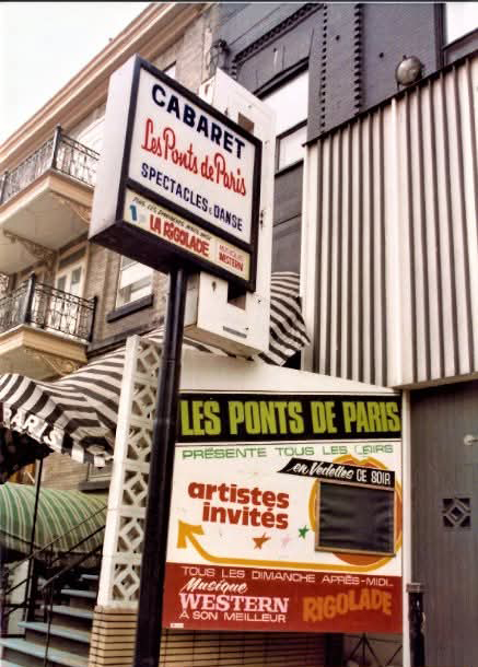 Les Ponts de Paris était l’un des cabarets les plus connus du centre-ville dans la seconde moitié du XXᵉ siècle. Le lieu apparaît d’abord sous le nom Aux Deux Canards au milieu des années 1950, avant de devenir Les Ponts de Paris, en 1957. C’était un cabaret très fréquenté par une clientèle mixte : hétéros, gais, lesbiennes, travestis, travailleurs du sexe et habitués du Red Light. Cette diversité faisait partie de sa signature et en a fait un point de repère important pour plusieurs communautés marginalisées.